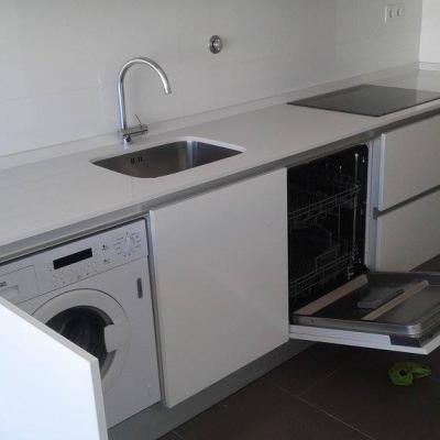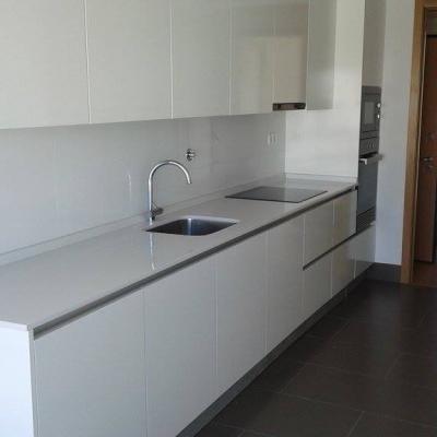 - Cozinha com puxador de perfil de alumínio oculto com frentes em branco alto brilho.
