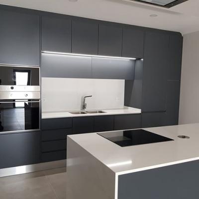 - Ilha com a placa indução e tomadas elétricas integradas.