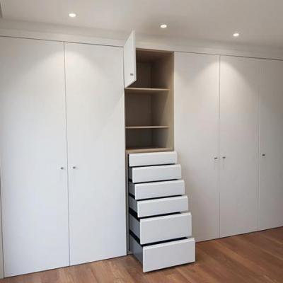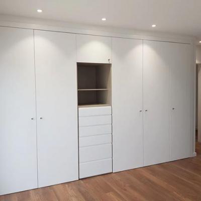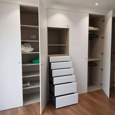Roupeiro com sistema portas de abertura lateral à cor de branco com acabamento mate.